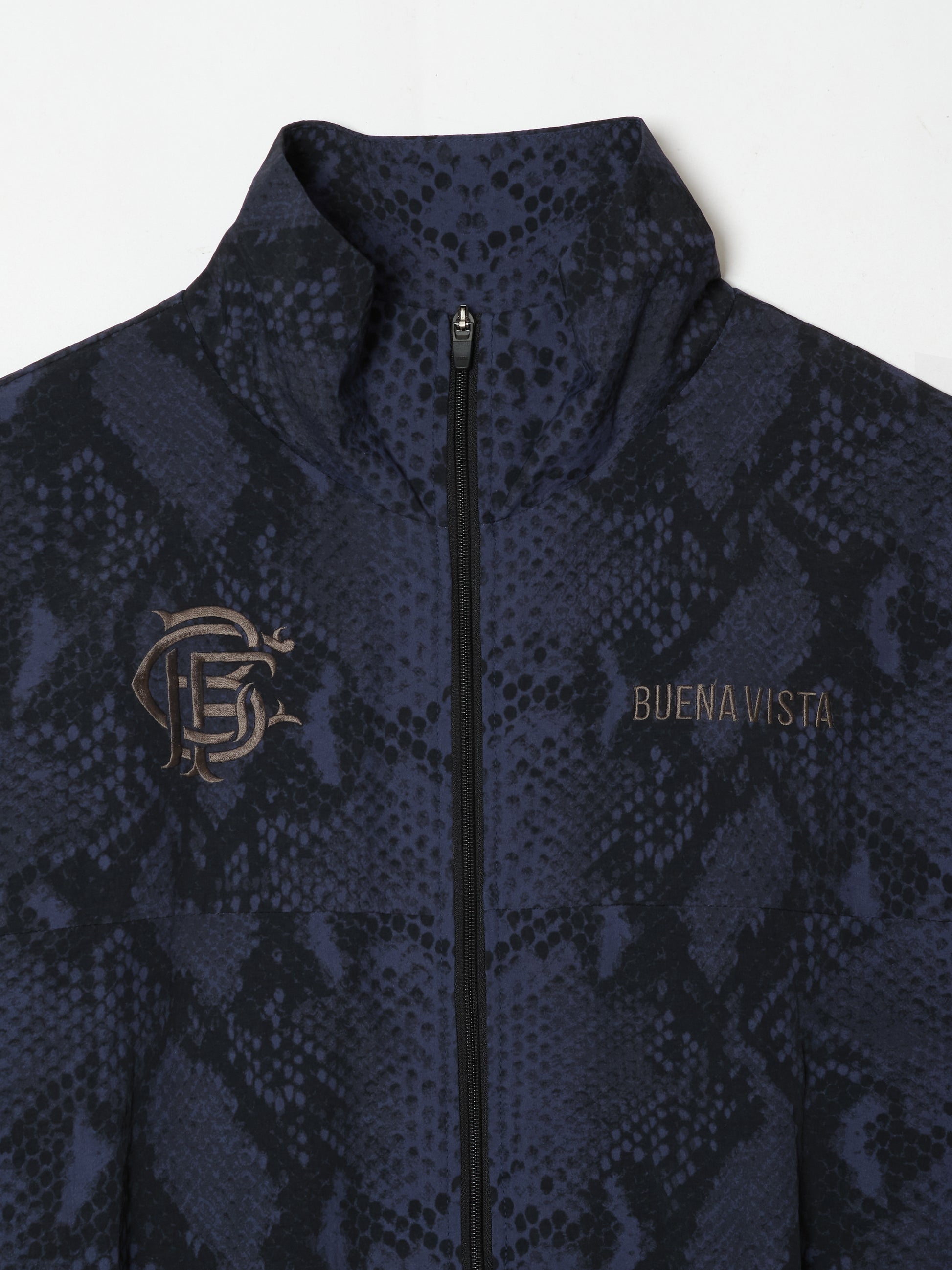 素材はワッシャーのような表情感のあるナイロンを使用しており、凹凸感がパイソン柄の迫力を醸し出している。