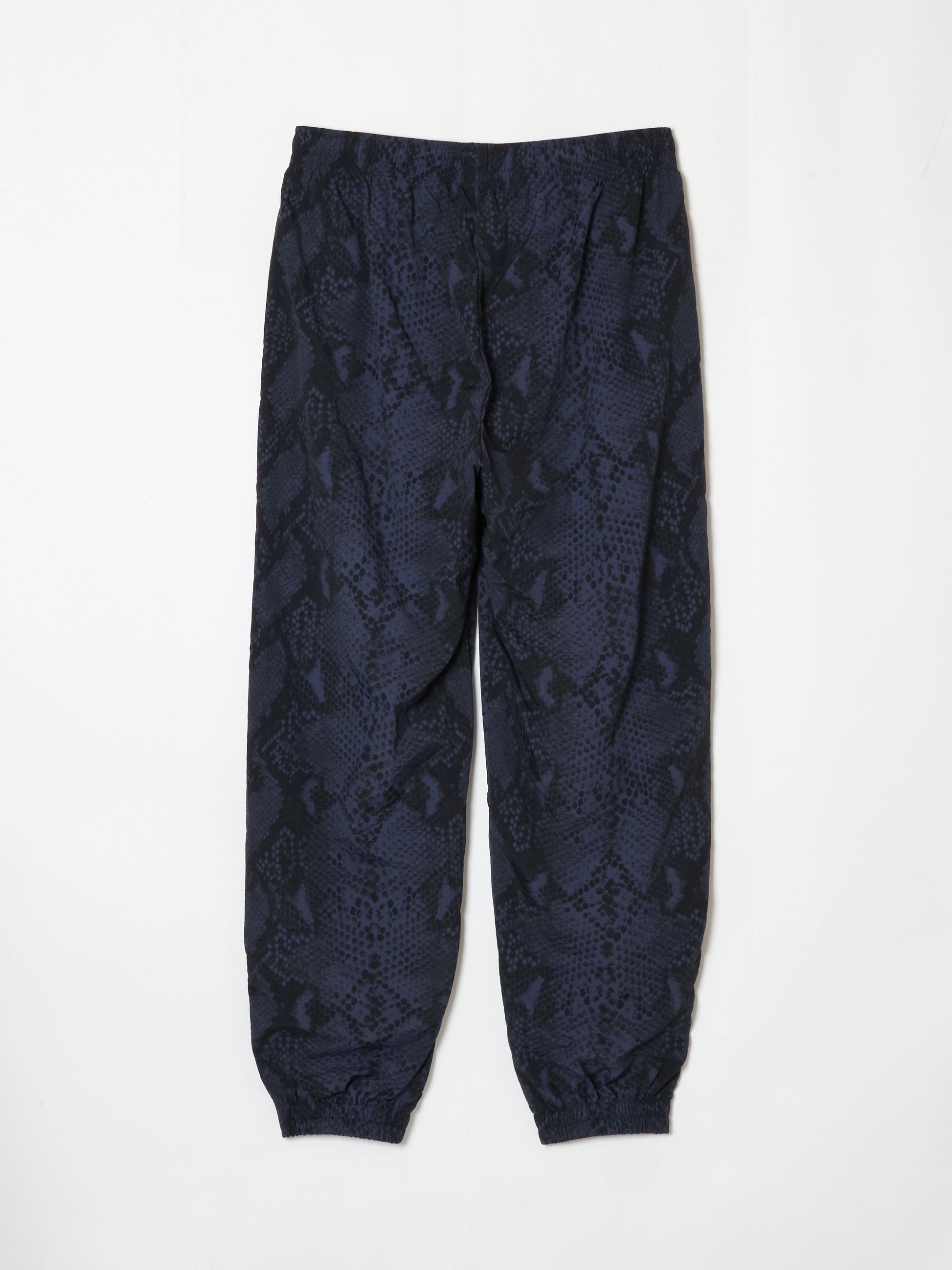 素材はワッシャーのような表情感のあるナイロンを使用しておリ、凹凸感がパイソン柄の迫力を醸し出している。