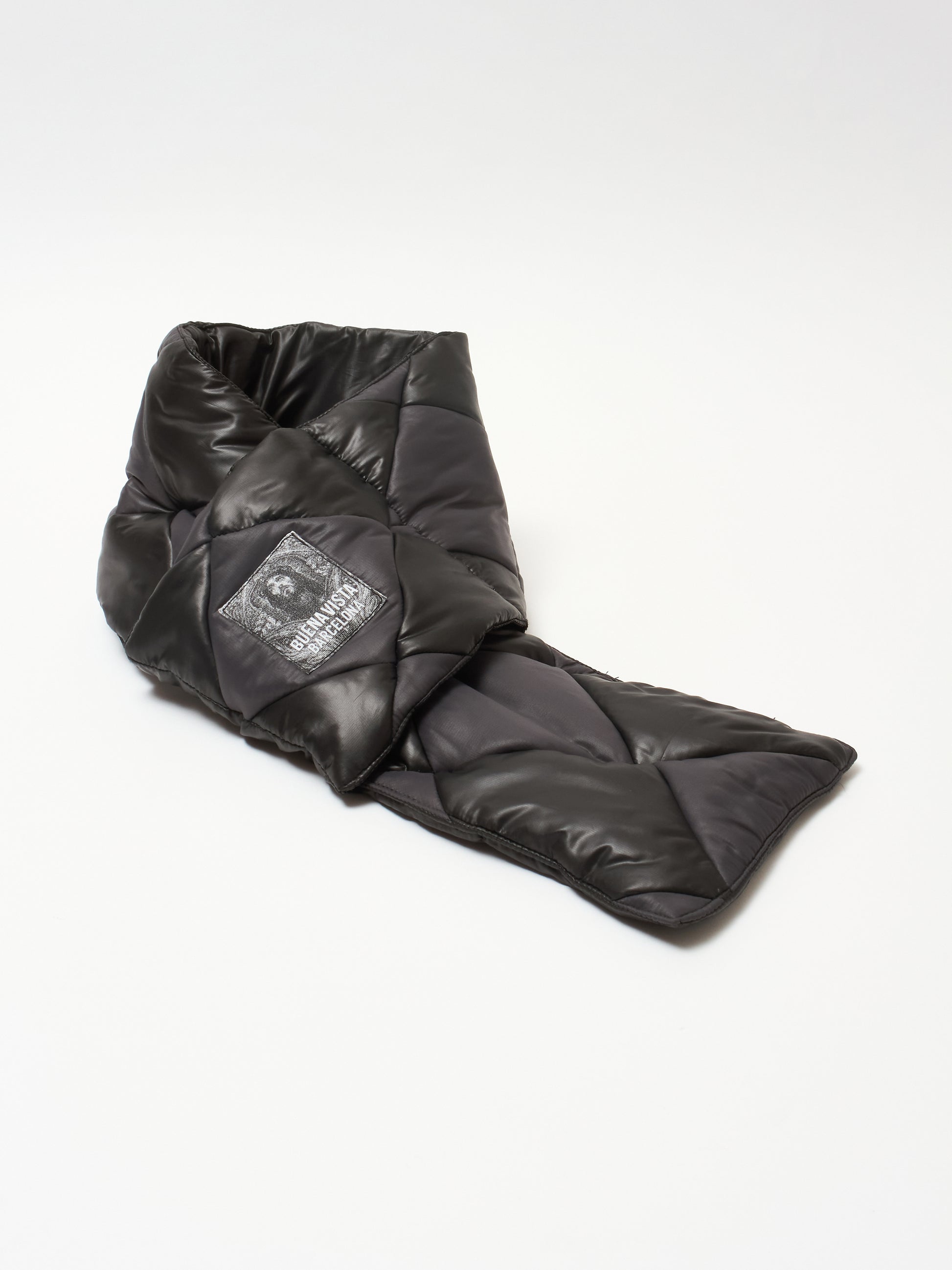 ダイヤ柄をパッチワークしたキルティングマフラー。
