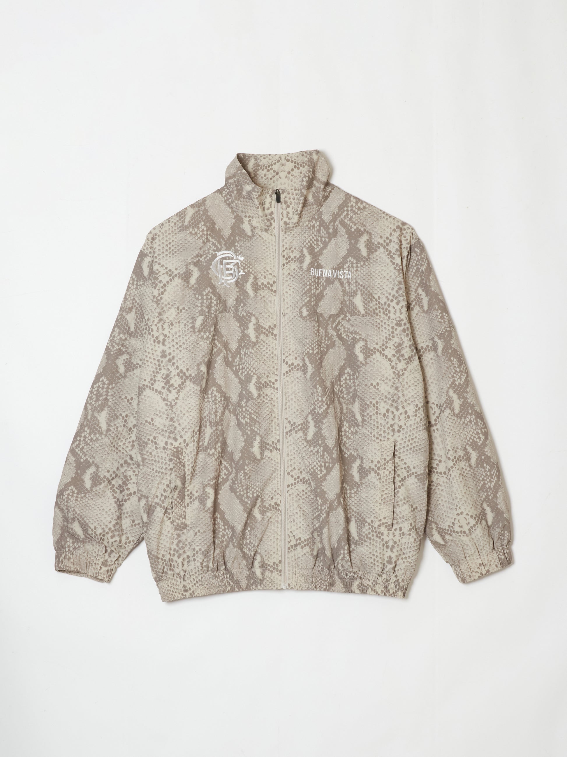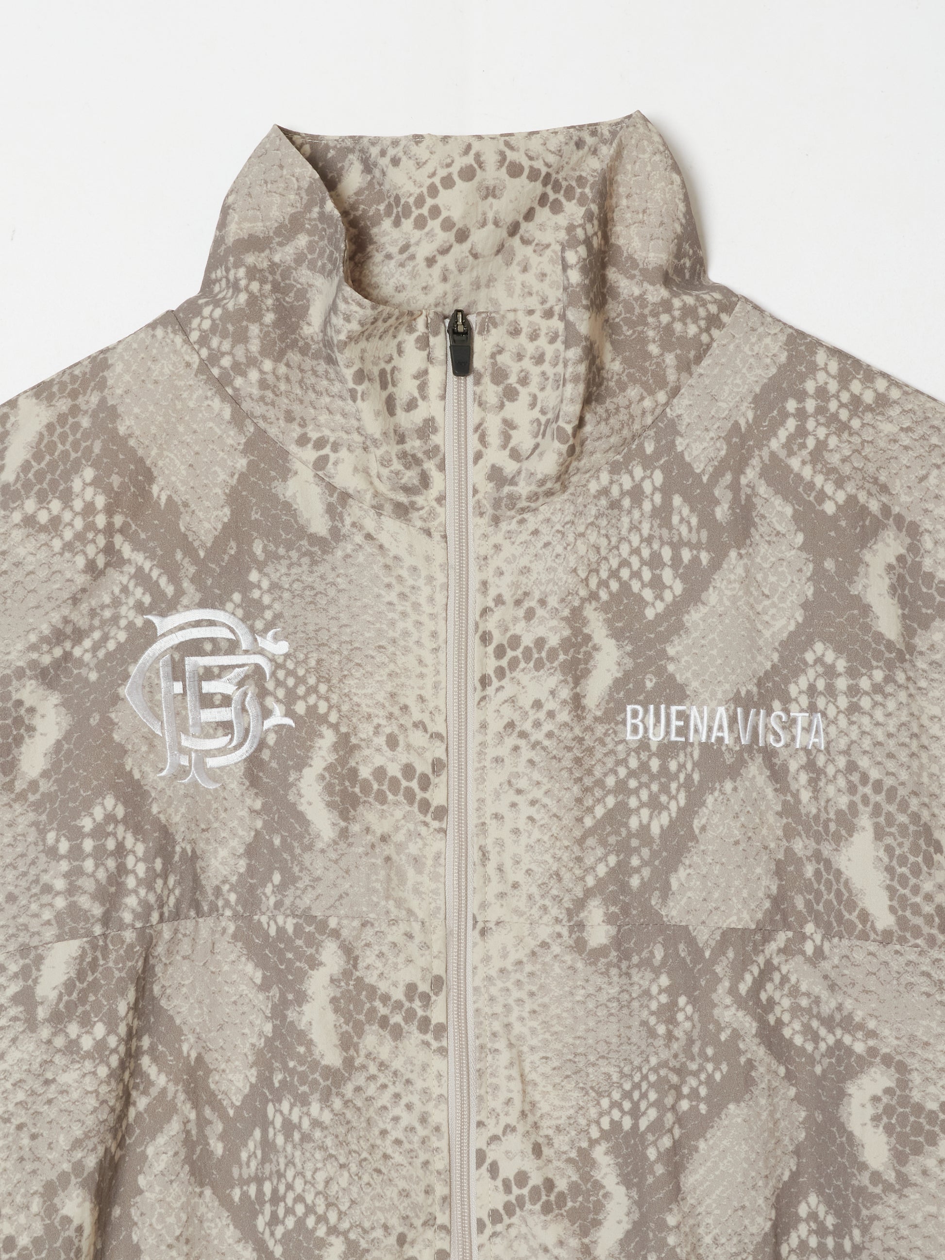 素材はワッシャーのような表情感のあるナイロンを使用しており、凹凸感がパイソン柄の迫力を醸し出している。