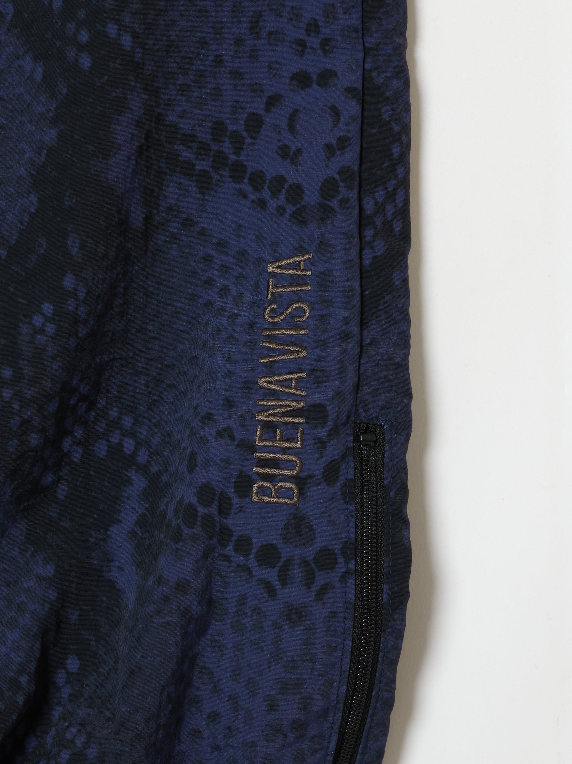 素材はワッシャーのような表情感のあるナイロンを使用しておリ、凹凸感がパイソン柄の迫力を醸し出している。