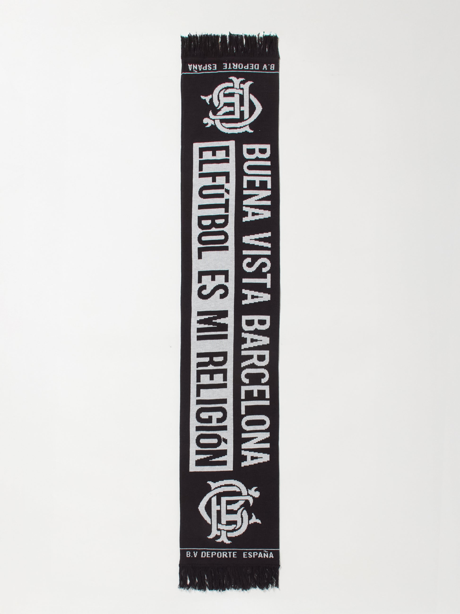 BUENA VISTA footboall clubのロゴと応援に込めたメッセージが編み込まれたフットボールマフラー。