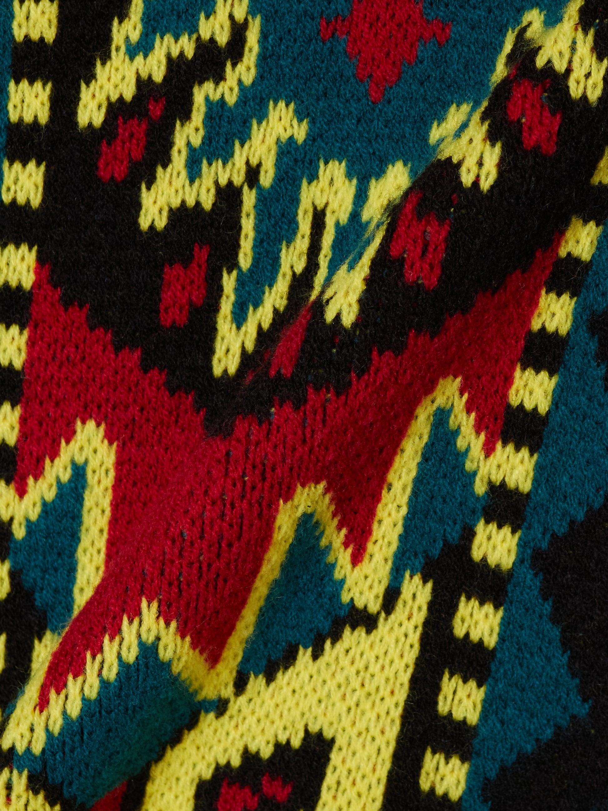 素材は敢えてアクリルの混紡率を高くすることで多色ジャガードニットの重さを軽減。